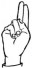 На ћирилици написано АНТОНИНА РАДОВАНЧЕВИЋ састоји се из 20 слова [?]. Исписано ћириличном једноручном азбуком за глувонеме: